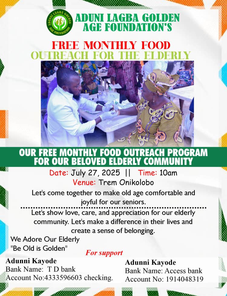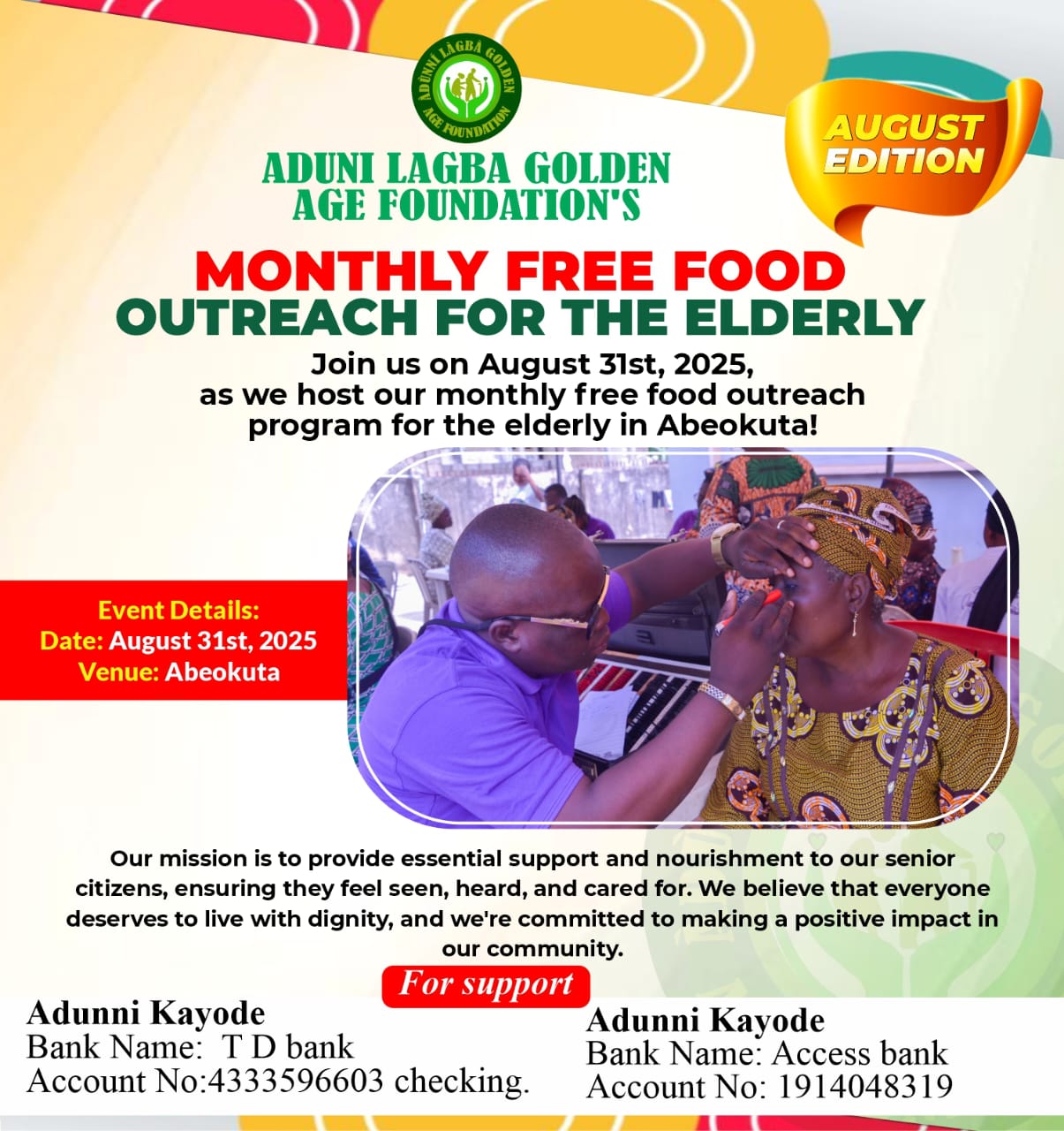 Adunni Lagba Golden Age Foundation is committed to promoting dignity, health, and happiness for senior citizens.